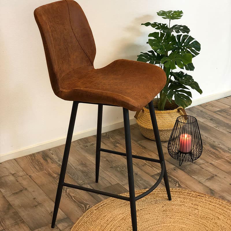 Mooie barkruk voorzien van Eco-leer. De kruk is waterbestendig en geschikt voor intensief gebruik. De zitting heeft een hoogte van 69 cm. Verkrijgbaar in het antraciet, cognac en olijfgroen. Afmetingen: 55x47x104cm.